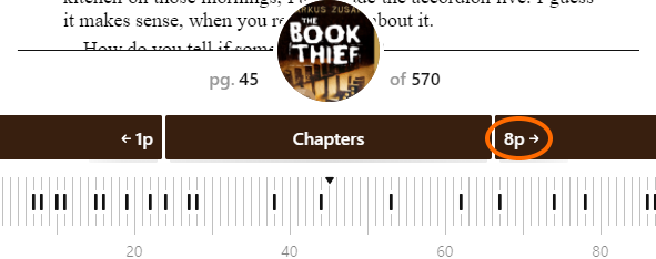 Klicke oder tippe auf deine aktuelle Seite, um anzuzeigen, wie viel Prozent deines Buches du schon gelesen hast.