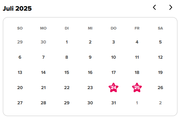 Du kannst anzeigen, an welchen Tagen du dein Leseziel erreicht hast. Die Tage, an denen du dein Ziel erreicht hast, sind mit einem Stern gekennzeichnet.
