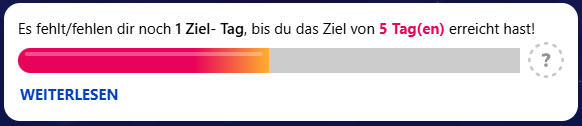 Hinweis: Die Tage, an denen du dein Ziel erreichst, müssen nicht unmittelbar aufeinanderfolgen, um in dieser Gesamtzahl berücksichtigt zu werden. - Die aktuelle Position deines Meilensteins: