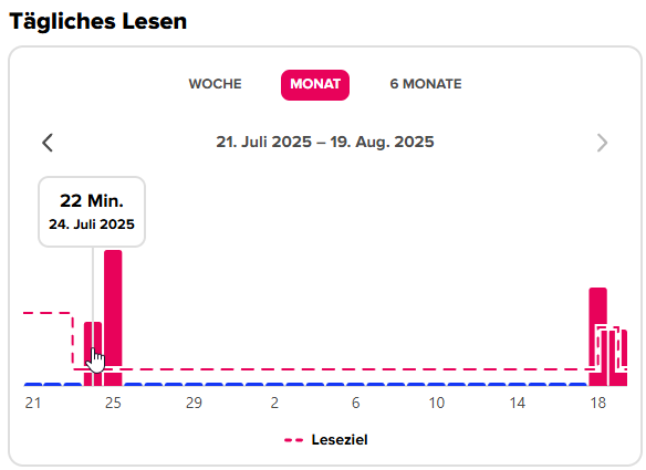Hinweis: Der Fortschritt beim Erreichen eines Leseziels betrifft nur das tägliche Leseziel, das du dir selbst gesteckt hast. Deine Fortschritte beim Bewältigen der Lese-Challenge sind etwas anderes.