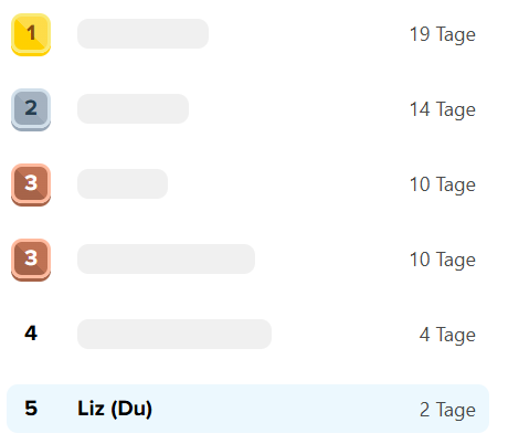 - Wenn du die Challenge erstellt hast, werden die Namen und Platzierungen aller Teilnehmer angezeigt.