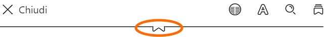 per vedere i tuoi segnalibri, le tue note e evidenziazioni. - Fare clic o toccare il centro della schermata per vedere la cronologia.