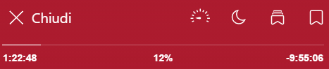 per aggiungere una nota. - Guarda la barra di avanzamento per vedere il tempo trascorso e il tempo che rimane nell'audiolibro. Vedrai anche i tuoi progressi in percentuale.