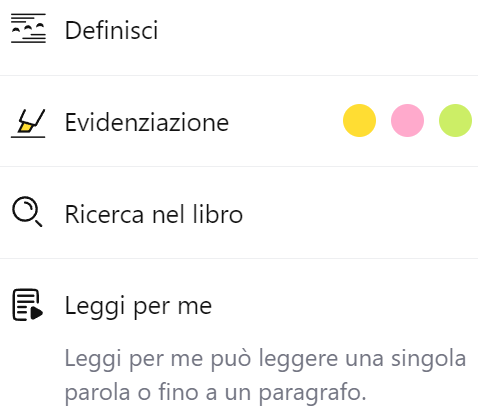 Dopo aver evidenziato una o più parole, potrai aggiungere una nota e cambiare il colore dell'evidenziazione.