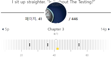 - 화면 하단의 타임라인을 슬라이드하여 책의 특정 위치로 이동할 수 있습니다.