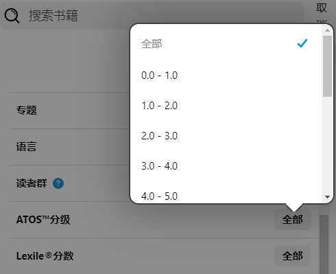 注意: 您的学校可能不会显示所有的分级阅读,有些图书没有所有分级阅读的分数。